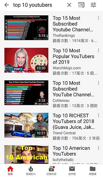 如何在不露臉的情況下,成為一個Youtuber,最簡單的方式就是做圖表式的數據分析。各種TOP 10的排行榜主題,成為時下熱搜關鍵字。例如top 10 most subscribed youtubers(前10大留言數最多的Youtubers),然後你就會看到短短5跟中的短片,就有一堆數據在跑。其實這沒什麼,但就是不知道為什麼有這種魅力,讓大多數的海外朋友心裡七上八下的,也許想要看數據的跳動,證明自己還活著。